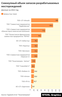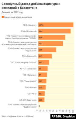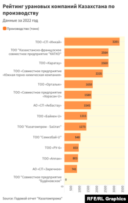 - Из 14 добывающих казахстанский уран компаний лишь две принадлежат «Казатомпрому» на 100 процентов.