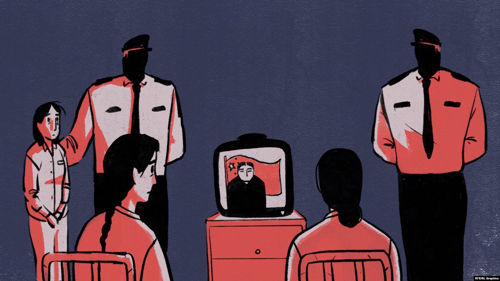 Вечером в течение часа смотрели телевизор. Смотрели программы, восхваляющие китайское государство. Во время просмотра нельзя было двигаться, чесать лицо, поправлять волосы. Если замечали такие нарушения, наказывали. Заставляли стоять на ногах в течение часа. Даже говорить запрещалось.
