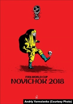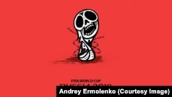 Украинский художник Андрей Ермоленко нарисовал серию плакатов, приуроченных к чемпионату мира по футболу в России. Графическим оформлением они напоминают официальную символику чемпионата, но на этом сходство заканчивается: каждый из плакатов посвящен событию, которое Ермоленко считает достаточным основанием для бойкота соревнований. В их числе – аннексия Крыма, поддержка сепаратистов на востоке Украины, сбитие Boeing'а над Донецком, бомбардировки Алеппо, судьба украинских политзаключенных в России, отравление бывшего агента ГРУ Сергея Скрипаля и его дочери в Великобритании. Самый популярный рисунок художника, официальный логотип чемпионата, стилизованный под череп, даже показали в прямом эфире на телеканале «Россия 1».