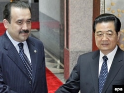 Премьер-министр Казахстана Карим Масимов и президент Китая Ху Цзиньтао. Шанхай, 30 апреля 2010 года.