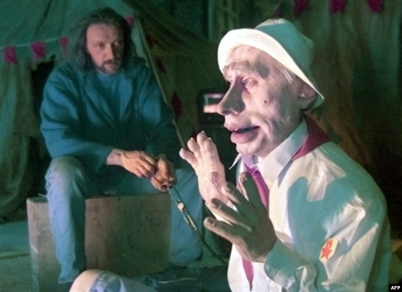 Кукла, изображающая Владимира Путина, во время съемок телешоу "Куклы" на канале НТВ. 30 марта 2000 года.