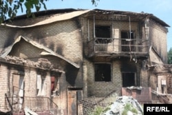 Сгоревший дом семьи бывшего президента Кыргызстана Курманбека Бакиева. Село Теит, Джалалабадская область, 15 мая 2010 года.